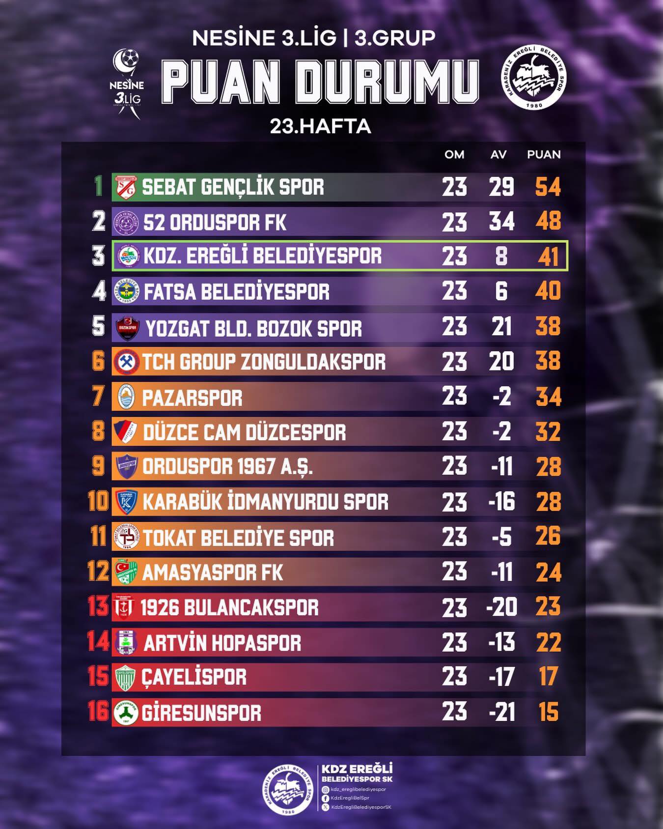 Bu mutluluğu bize yaşatan teknik ekip ve futbolcularımızı tebrik eder şehrimiz adına teşekkür ederiz. Galibiyet duaları ve iyi niyetleri ile bize destek olan Kdz.Ereğlilere ve Kdz.Ereğli Belediyesporlulara armağan olsun. Ligin son haftaları yaklaştıkça maçların sertlik ve mücadele gücü çok yükseliyor. Her puan puanlar çok kıymetli hale geldi artık.