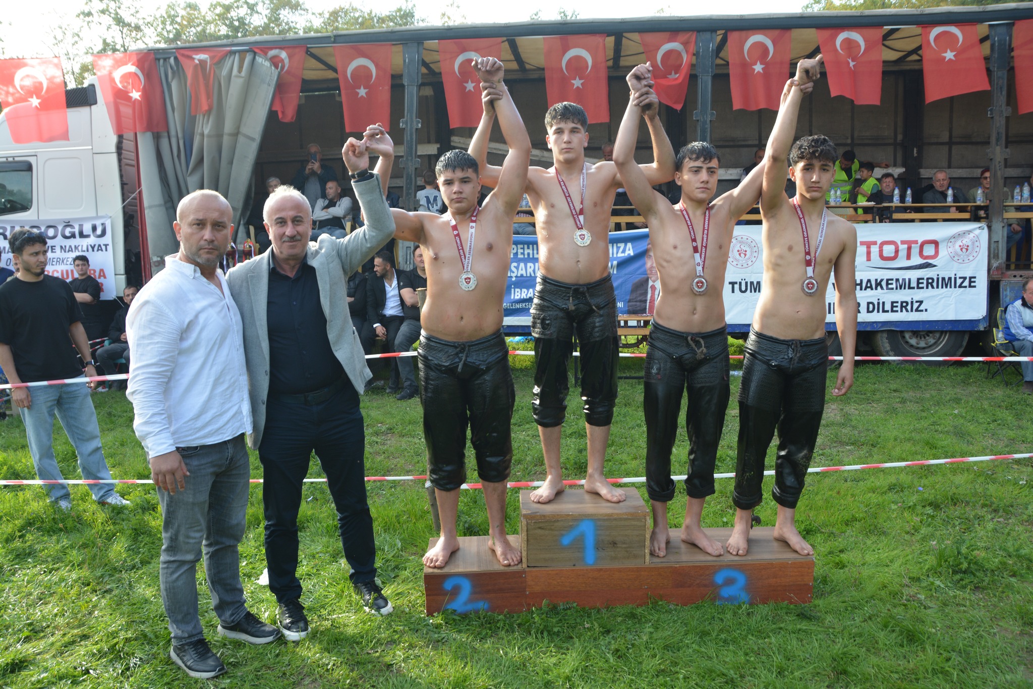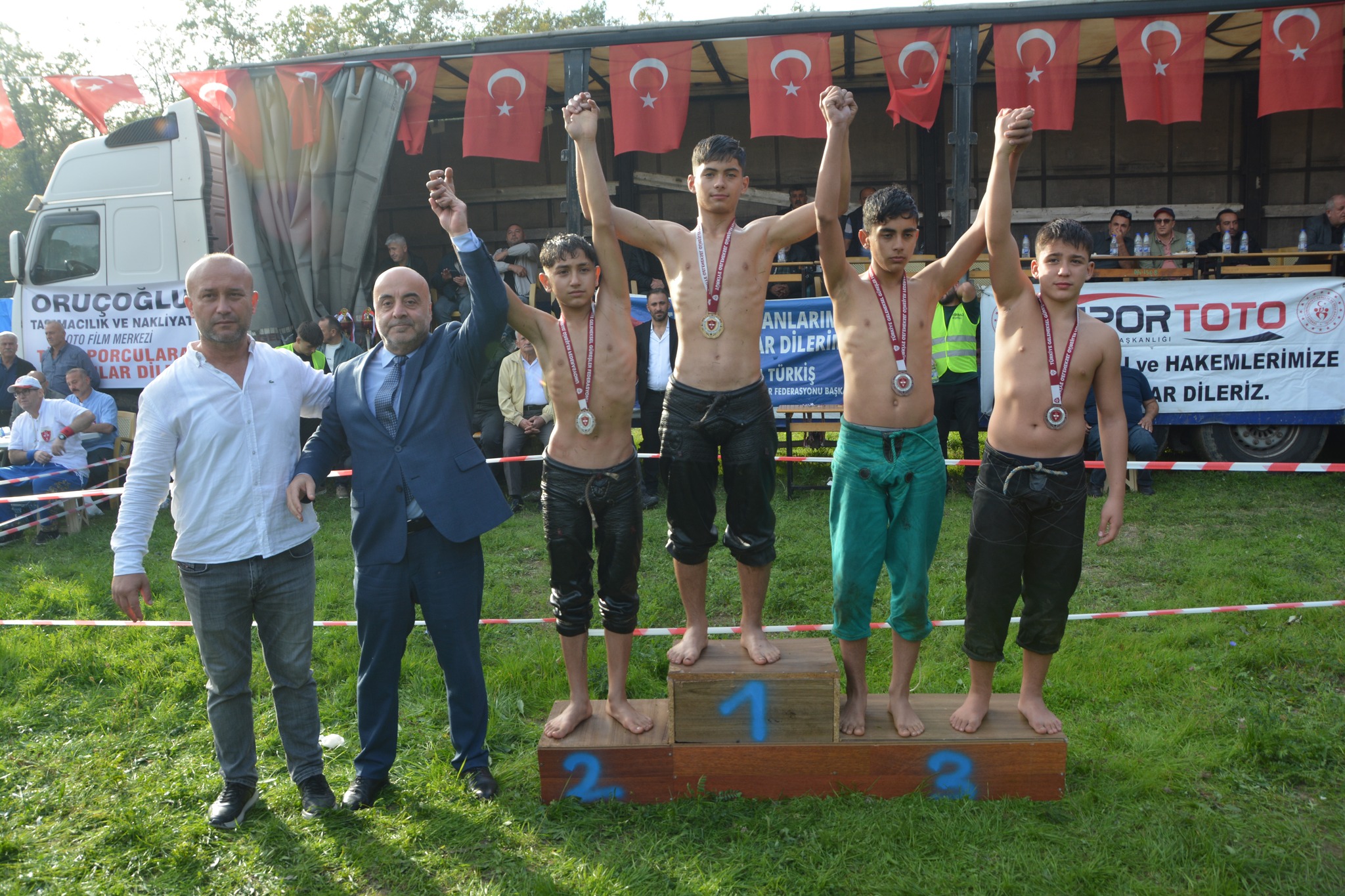 Minik güreşçilerin performansı büyük beğeni toplarken, dereceye giren sporcular çeşitli ödüllerle onurlandırıldı.